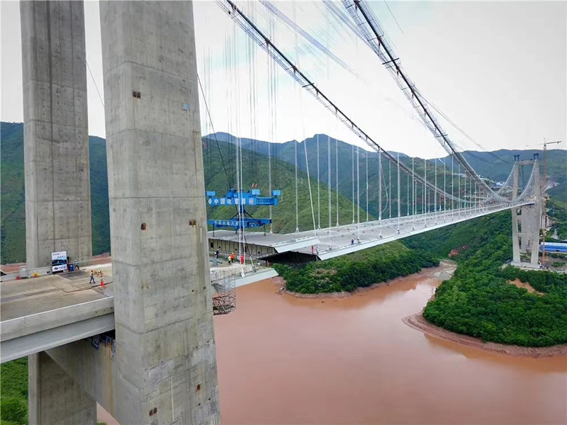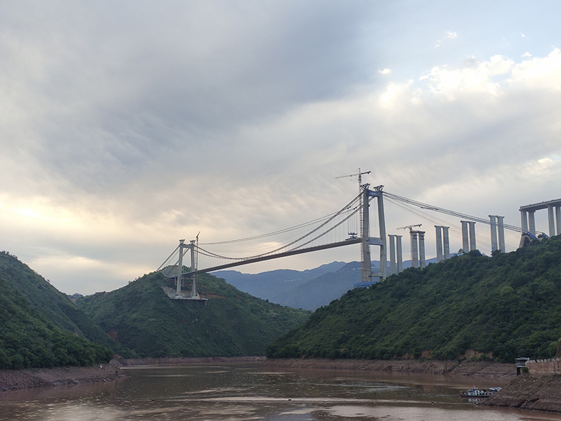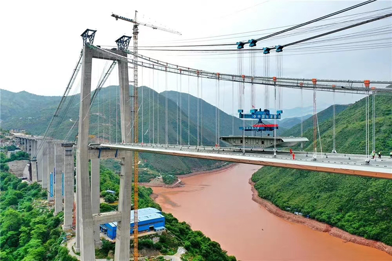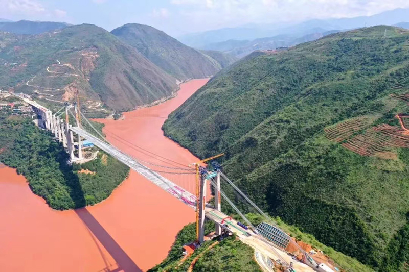 紅河全長1280公里,是一條跨越中國和越南的國際河流。紅河特大橋為跨越紅河南沙水庫而建,是我國首座跨越紅河的高速公路懸索特大橋,大橋全長1366米,其中建水岸引橋長580米,元陽岸引橋長80米,主跨長700米。庫區(qū)水面距橋面高達184米,建水側(cè)主塔高181.29米,元陽側(cè)主塔高122.5米。2020年9月5日,紅河特大橋主跨成功合龍,標志著全線工程建設(shè)取得重大節(jié)點性勝利。